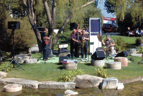 Brad's Quartet (Eric Crystal sax, Peter Barshay bass, and Brian Melvin drums) at SF Jazz Festival concert in Levi Plaza