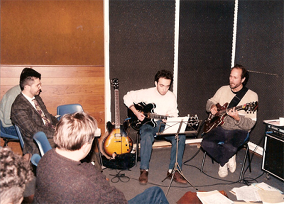 Brad teaching guitar clinic with Luigi Tessarola in Torino, Italy